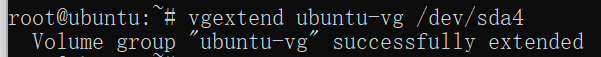 1 | vgextend ubuntu-vg /dev/sda4 |
