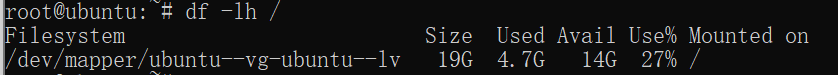1 | resize2fs /dev/ubuntu-vg/ubuntu-lv |